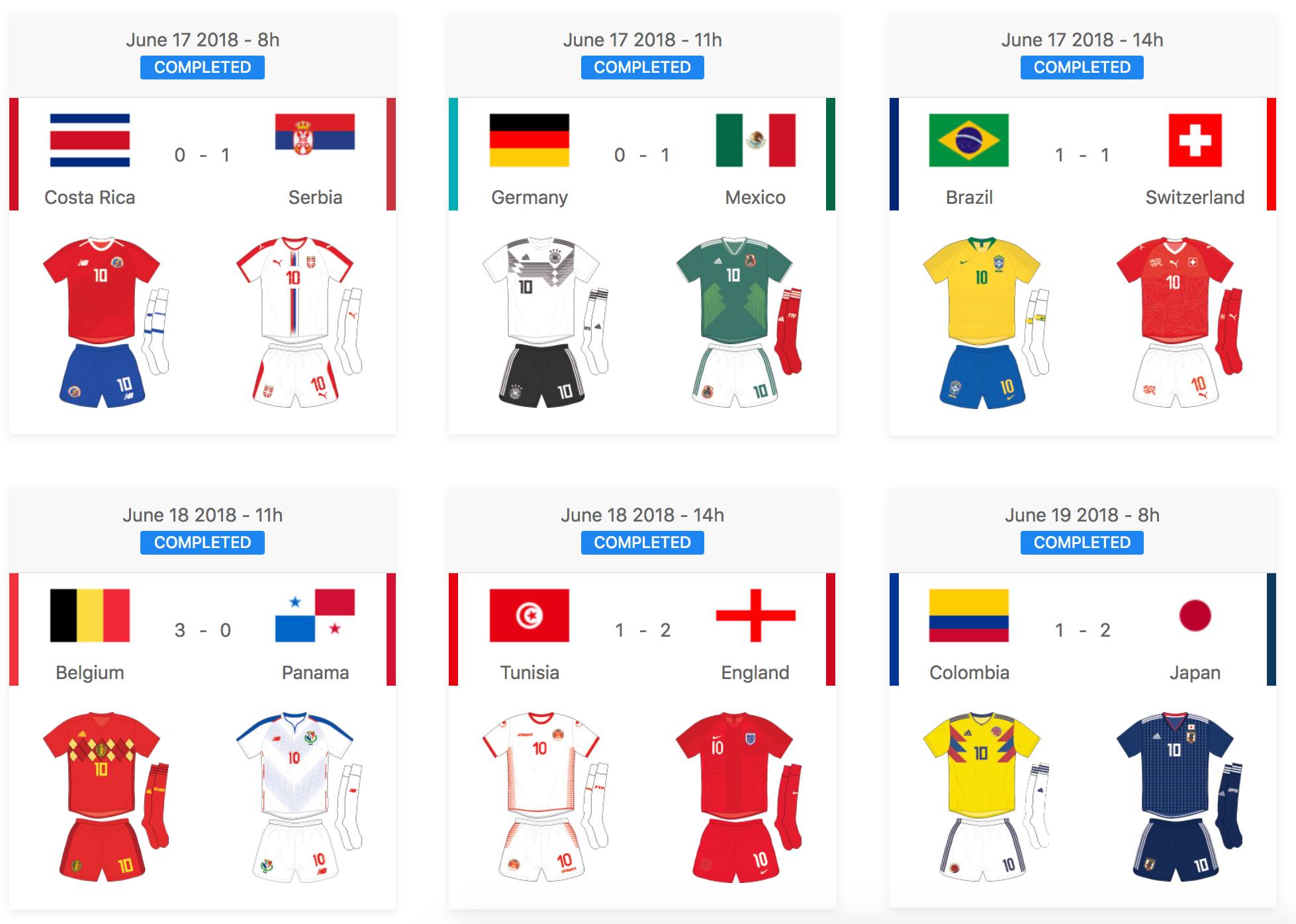 Site web présentant les différentes combinaisons des uniformes portés par les équipes lors de la Coupe du Monde de la FIFA 2018. Projet personnel alliant mes différentes passions : la technologie, le design et le sport.